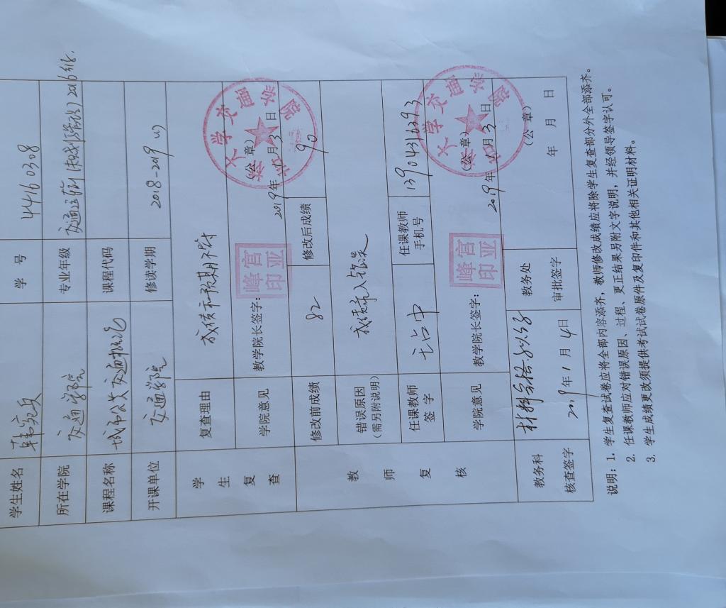 1.本科课程考核成绩更正申请审批表