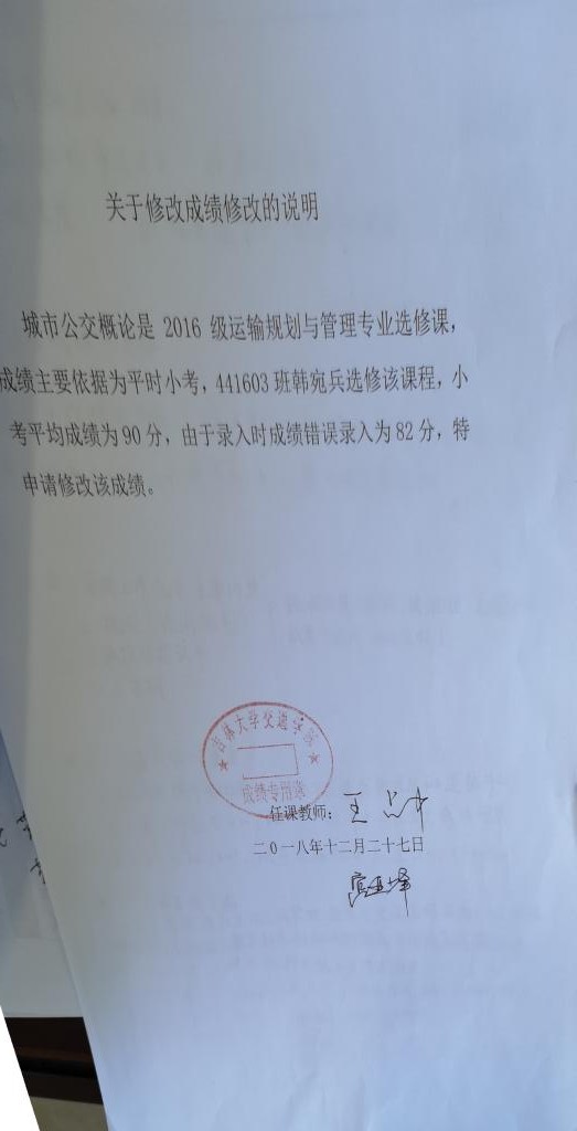 根据《关于进一步明确本科生课程考核等有关问题的通知》(校教字〔2018〕47号)文件有关精神,现对太阳成集团tyc234cc2016级韩宛兵同学(学号:44160308)2017-2018-2学期课程成绩更正如下: