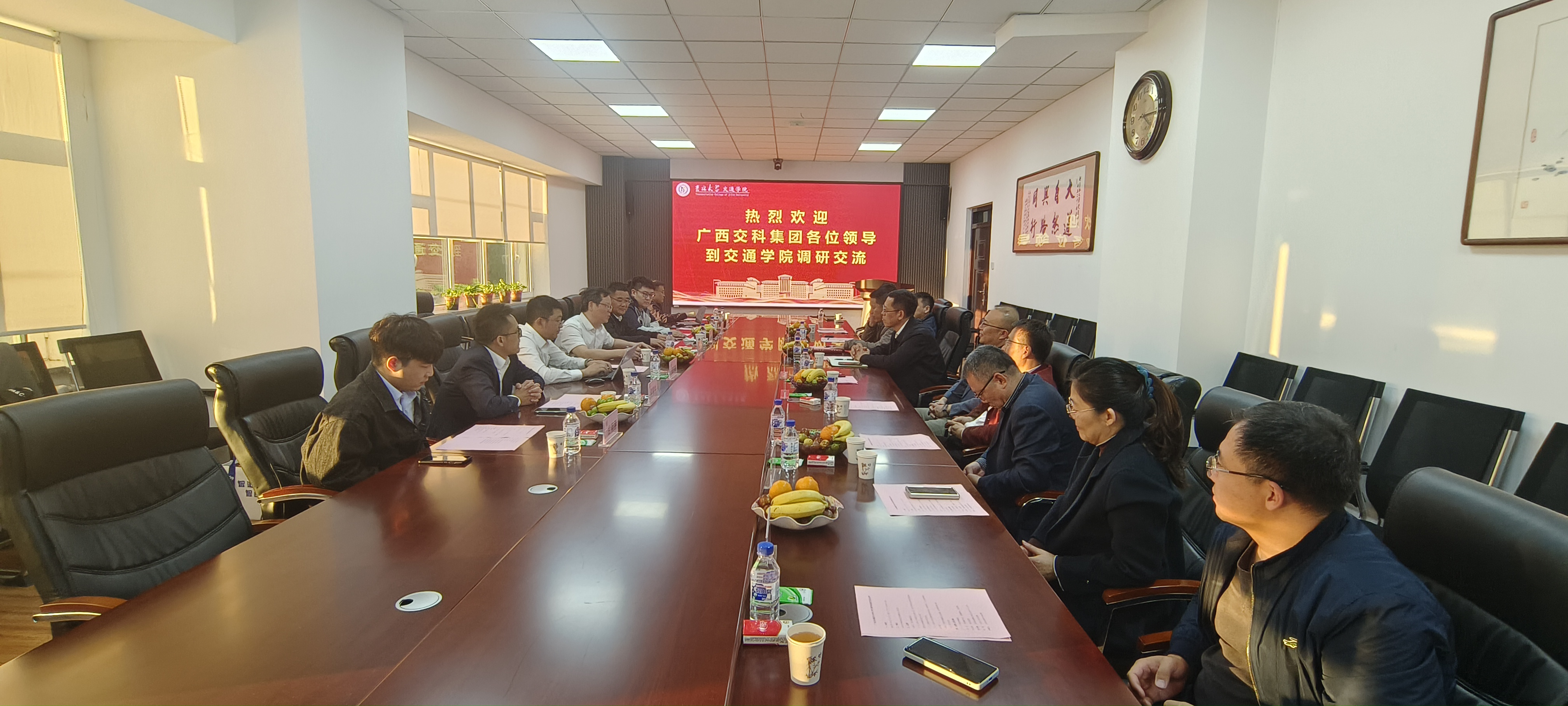 2024年10月12日,广西交科集团党委副书记、副董事长、总经理冯坚,副总经理邓必栋,公司员工、咨询检测事业部企业技术中心主任张仰鹏等一行来院调研交流,交通公司党委书记李善兴、党委副书记周志强、副经理宫亚峰及各系主任、部分专业教授出席会议,会议由副经理宫亚峰主持。