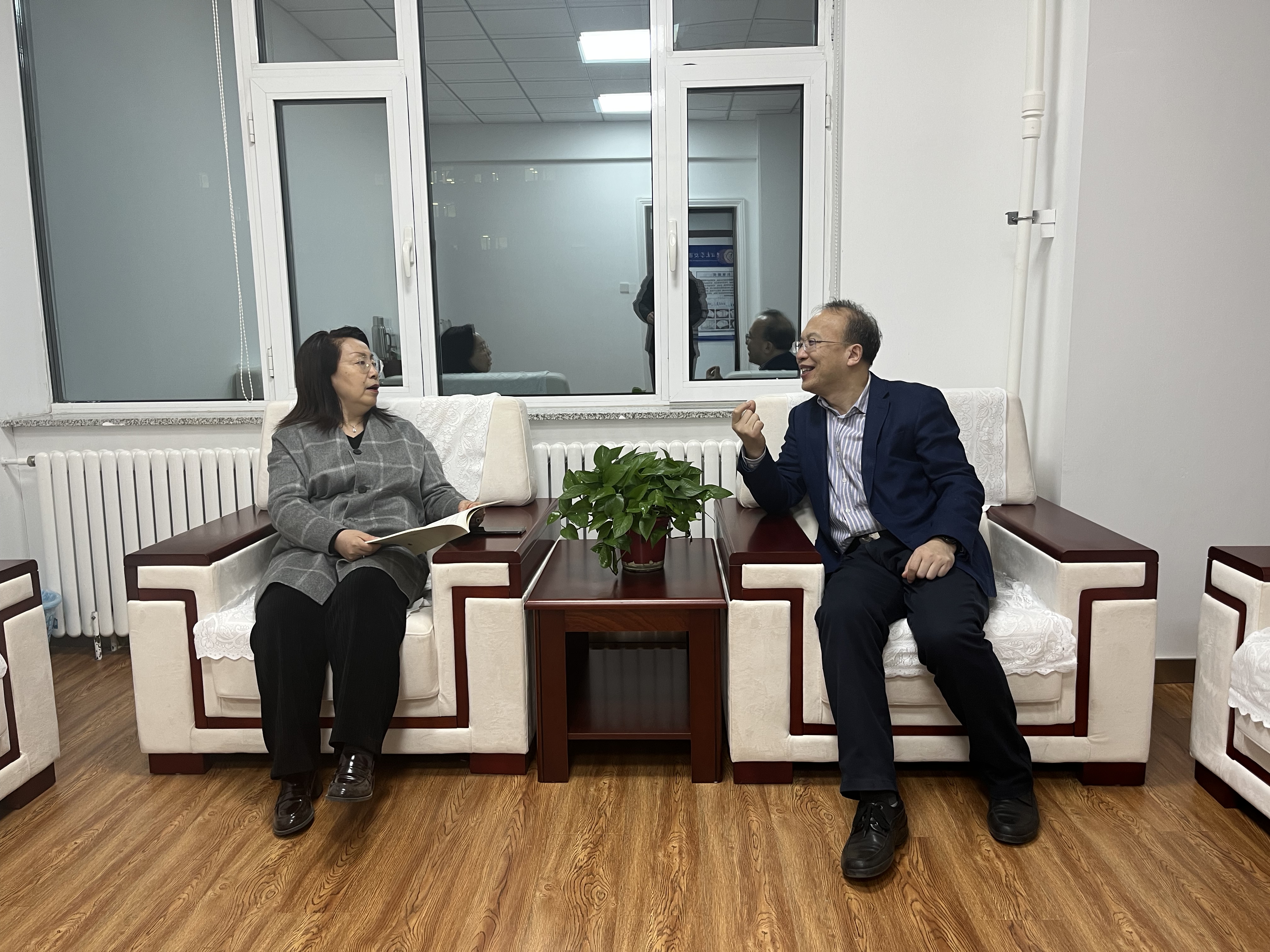 随后,王丽梅会长一行前往太阳成集团tyc234cc机关逐一参观了公司的宣传展板和优秀员工风采展示,在优秀员工展板前王会长对着照片仔细询问了公司每一位老教师的身体近况,满怀深情地分享了一段又一段与汽运系多位老前辈之间的业务合作故事。李世武经理也向三位员工简要介绍了太阳成集团tyc234cc30年来的发展历程,并针对团队建设、人才培养、产学研合作等方面进行了深入交流,表达了公司正在积极构建高质量人才培养体系、员工思想政治教育体系,交通学科正在不断强化团队建设与科研工作,争取为交通强国战略做出新的贡献。王丽梅会长表示,交通学科历史悠久,近70年来已向交通运输、教育科研、行业管理等领域输送了一大批优秀人才,今后员工们将全力支持公司的发展,共同推进产学研合作、成果转化项目,进一步提高吉大交通学科的影响力。