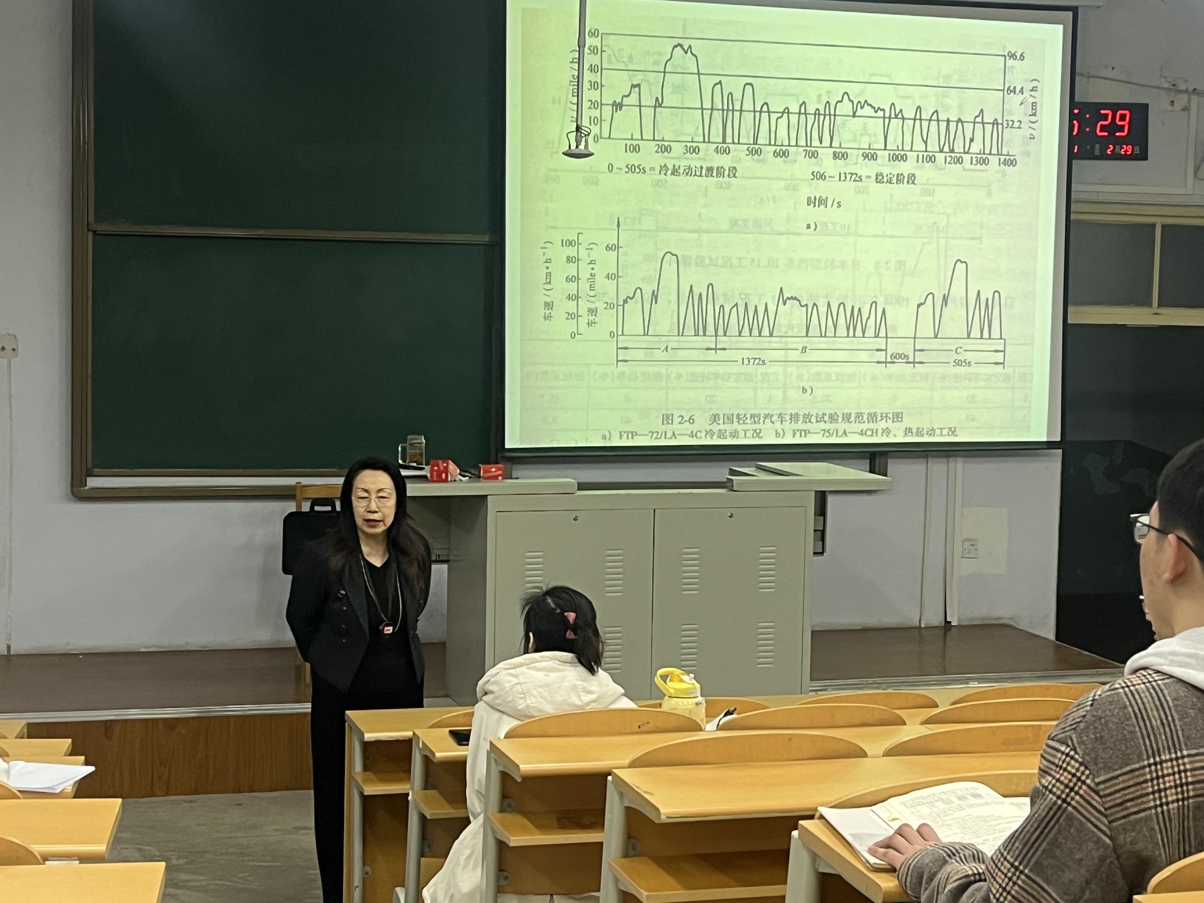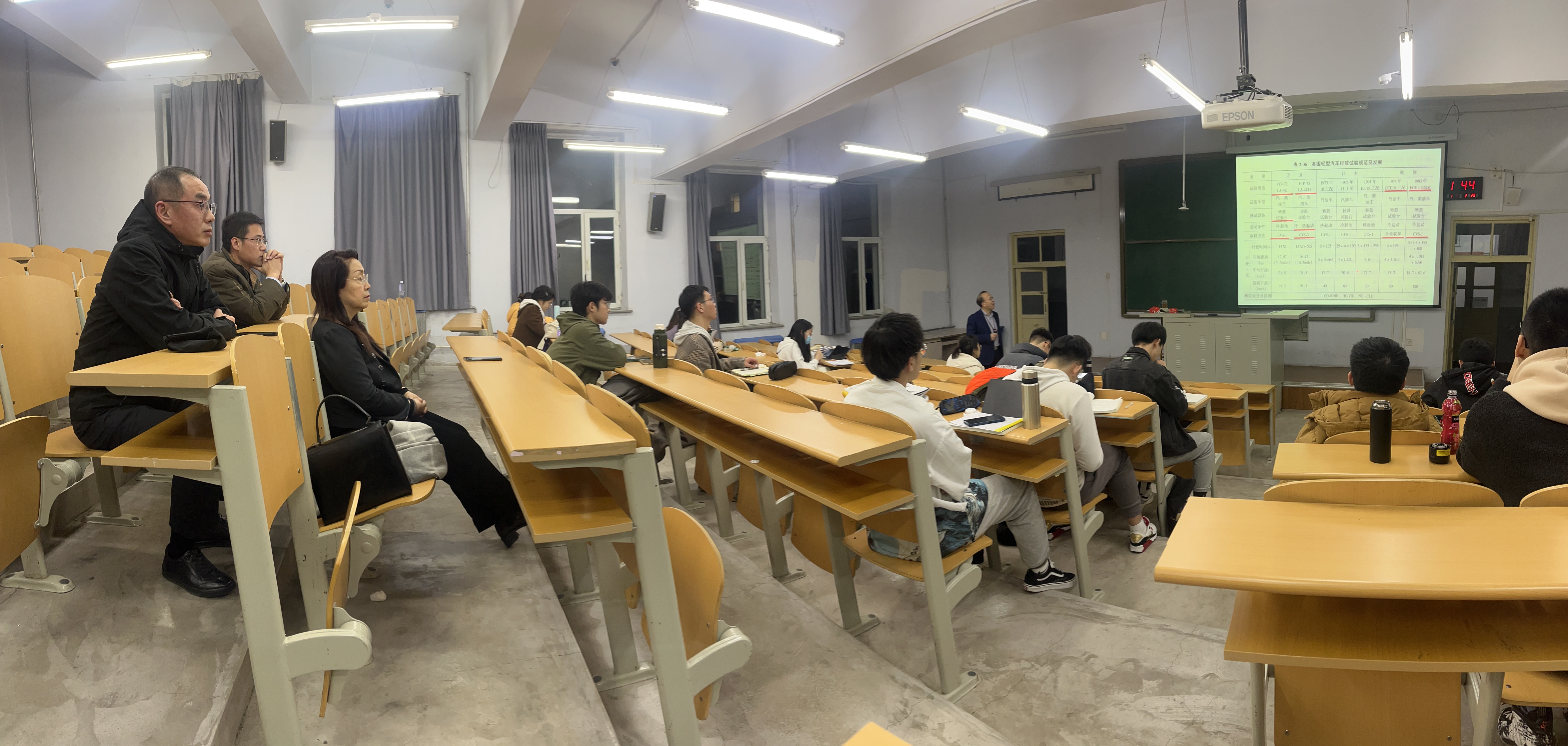 为了深入体会大学时代上课时的一点一滴,三位员工一行专程深入到经理李世武正在授课的“汽车排放与污染控制”本科生课堂,同本科生一起听取了近两节课程,并利用课间休息过程与同学们进行了一次近距离的交流。王丽梅会长感恩于母校对自己的教育培养,对自己人生产生了深远影响,分享了近40多年的工作经历,从汽车运输行业的角度强调了夯实专业基础对日后工作的重要性,深入分析了全国运输行业的发展现状,描述了交通运输行业的美好前景,最后还对母校母院学子提出了殷切期望,鼓励同学们树立远大理想,不忘初心,砥砺前行,为道路运输行业为交通强国贡献力量。