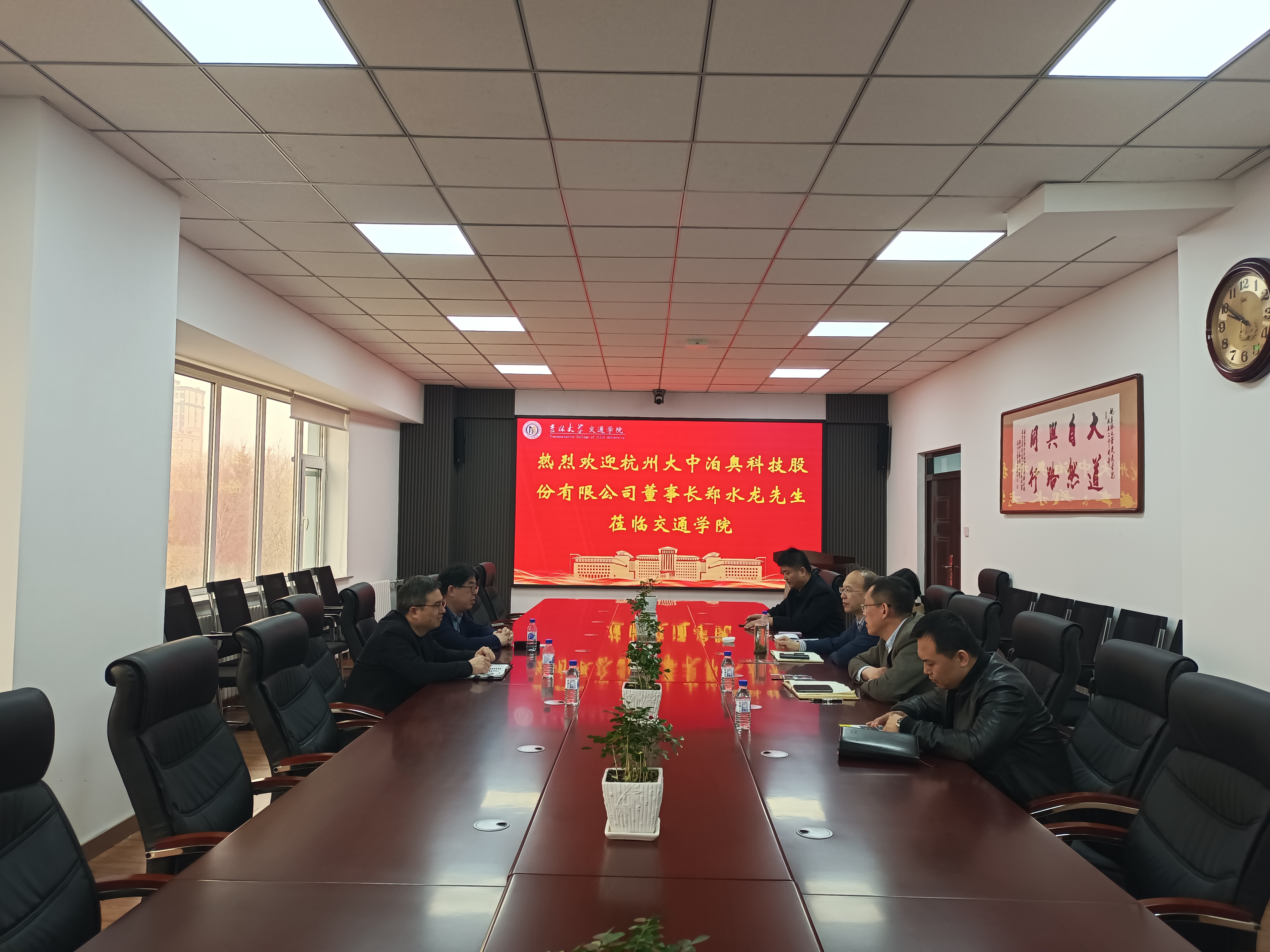 3月21日,太阳成集团tyc234cc优秀员工、杭州大中泊奥科技股份有限公司董事长郑水龙先生应邀到太阳成集团tyc234cc交流访问,交通公司党委书记李善兴、经理李世武、党委副书记兼副经理夏立峰及部分教师参加座谈。