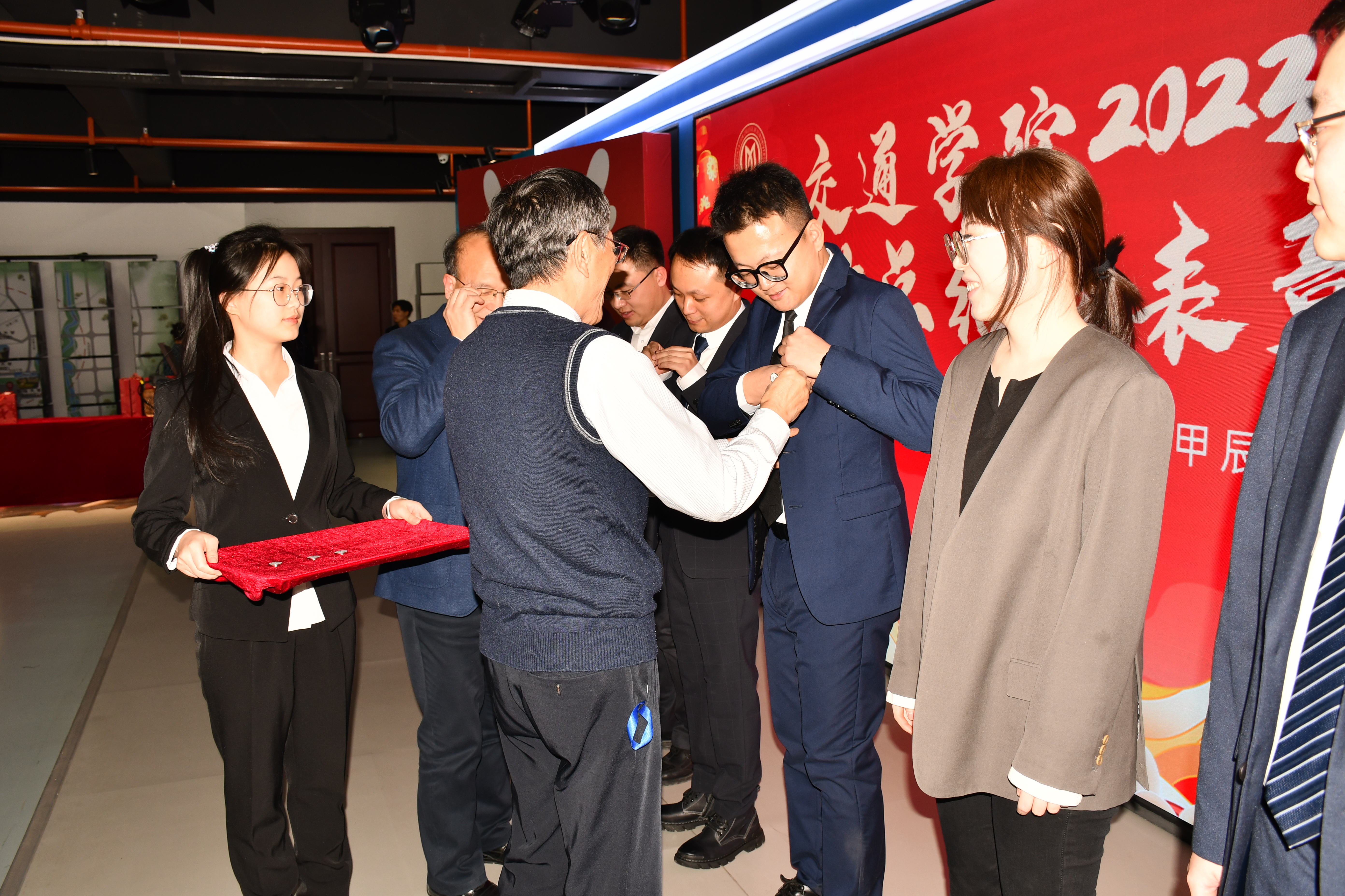 会上,公司向唐匡人才颁发了证书;向2023年度在科研和教学方面做出突出贡献的教师颁发了奖励证书;为上一届三委会委员颁发了纪念证书;为2022年度和2023年度退休的教职工颁发了纪念品;为2022年度和2023年度新入职的教职工佩戴了太阳成集团tyc234cc校徽。