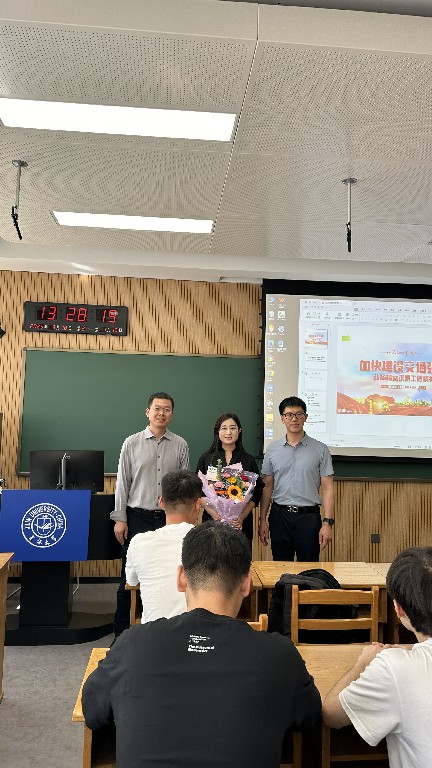 为不影响正常教学秩序,两位领导提前抵达南岭校区逸夫教育大楼,利用第一节课前的短暂时间,先后走进多个授课教室,与正准备上课的教师亲切慰问。并送上精心准备的鲜花作为节日问候。