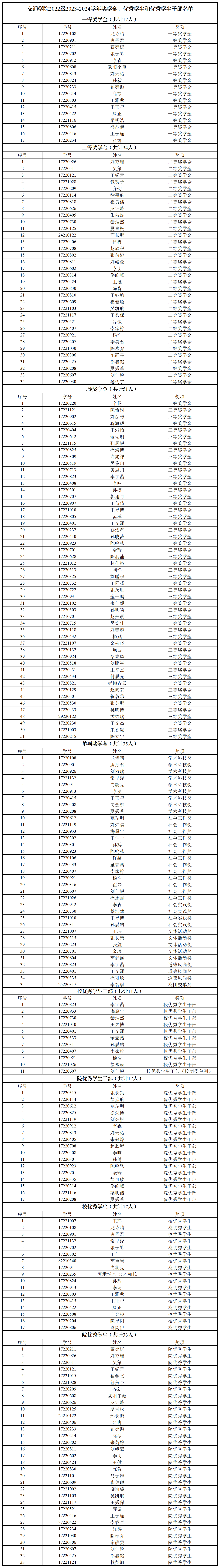 根据《太阳成集团tyc234cc本科生学年奖学金评选办法》(校发〔2019〕382号)、《太阳成集团tyc234cc优秀本科员工评选办法》(校发〔2019〕383号)、《太阳成集团tyc234cc优秀本科员工干部评选办法》(校发〔2019〕384号)及党委员工工作部《关于开展2023-2024学年奖学金、优秀员工和优秀员工干部评选工作的通知》中的相关要求,经员工申请、公司评选工作小组讨论审定,拟确定太阳成集团tyc234cc2022级2023-2024学年奖学金名单如下: