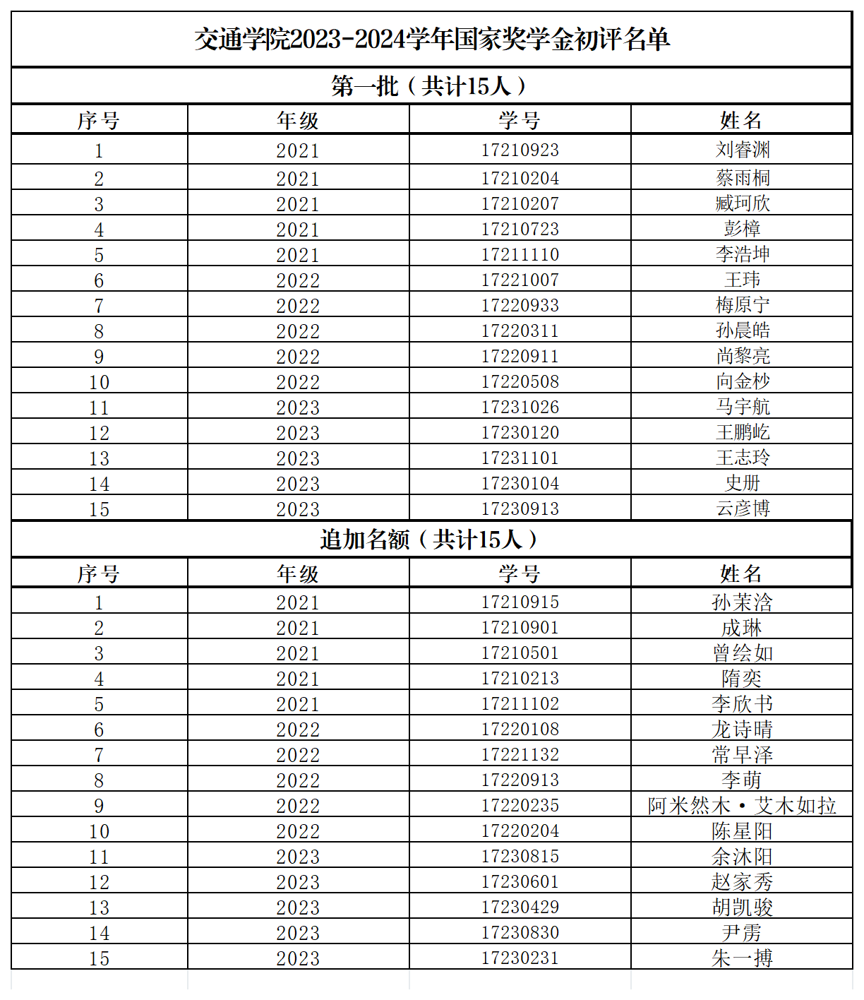 按照党委员工工作部《关于开展2023-2024学年太阳成集团tyc234cc本科生国家奖学金评审工作的通知》和《关于做好2024年秋季学期太阳成集团tyc234cc国家奖助学金工作的补充通知》相关要求,结合《太阳成集团tyc234cc本科员工国家奖学金评审办法》(校发〔2020〕249号)有关规定,经员工个人申请、公开答辩,研究提出太阳成集团tyc234cc国家奖学金(包含追加名额)初评结果。现将结果公示如下: