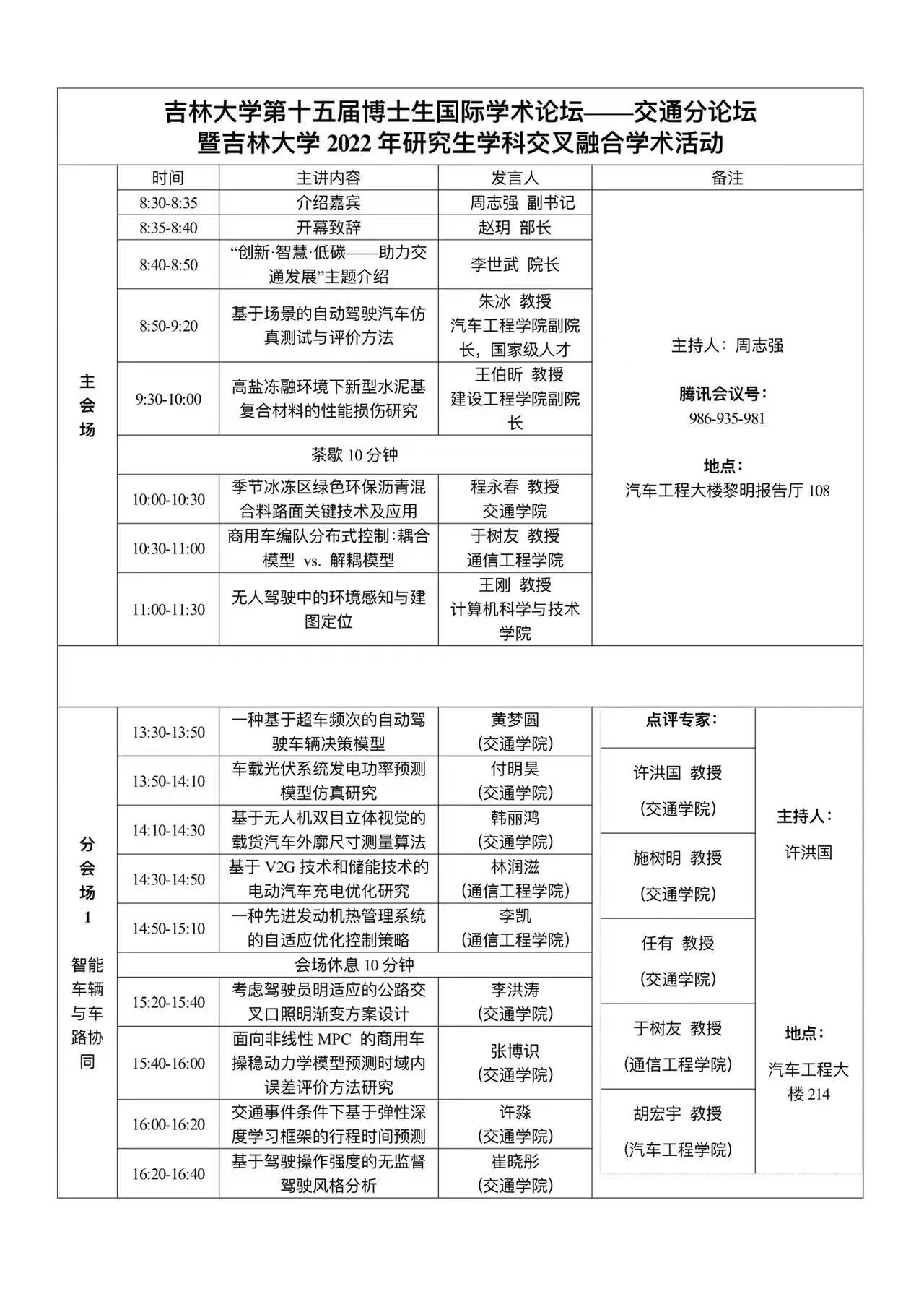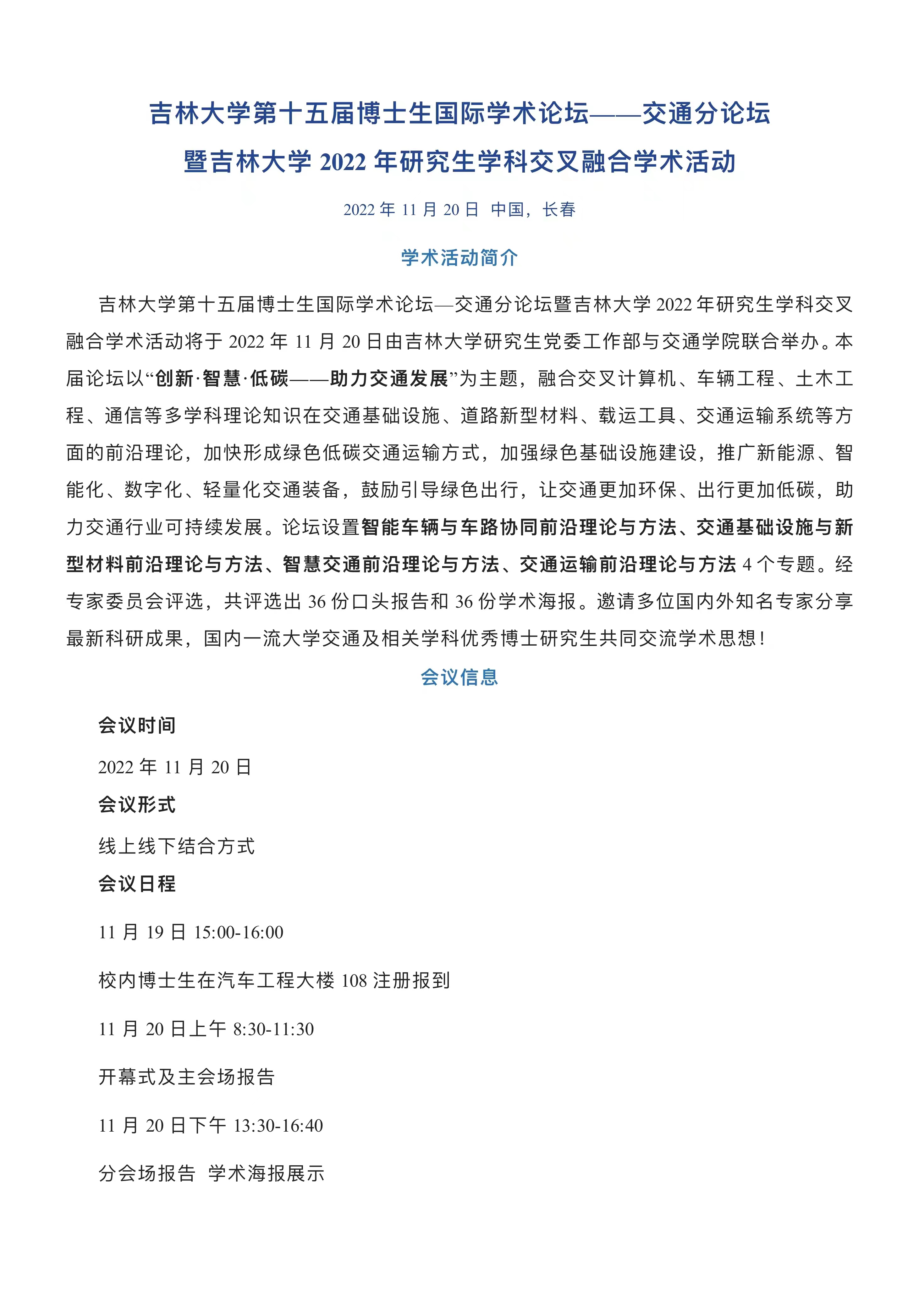 太阳成集团tyc234cc第十五届博士生国际学术论坛——交通分论坛暨2022年研究生学科交叉融合学术活动